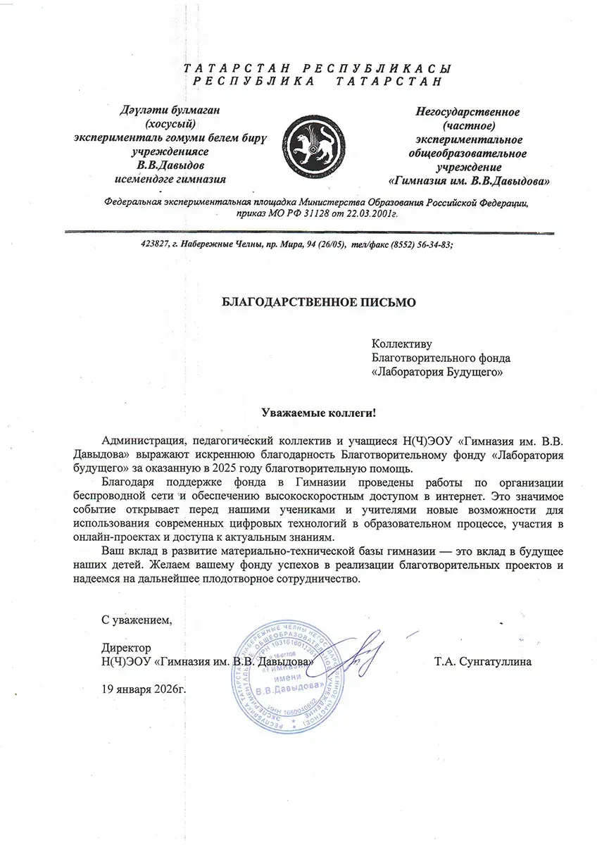 Проект стал частью благотворительной программы фонда «Лаборатория будущего 2025-2030», направленной на развитии и поддержку образовательных инициатив в г. Набережные Челны.